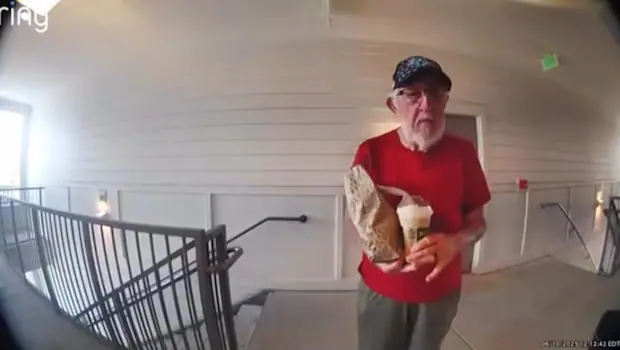 Larry, an 81-year-old delivery worker for DoorDash, had no idea that one of his routine orders would end up changing his life. On that day, he delivered food to Ireland Dannehold, a young woman living in Florida. Her doorbell camera captured the moment he arrived at her apartment building, climbed three long flights of stairs, and delivered the order with quiet dignity.
