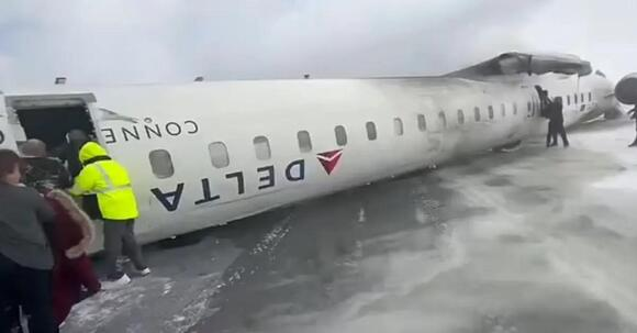 A Delta Air Lines regional jet flipped upside down upon landing at Canada’s Toronto Pearson Airport on Monday amid strong winds following a snowstorm.