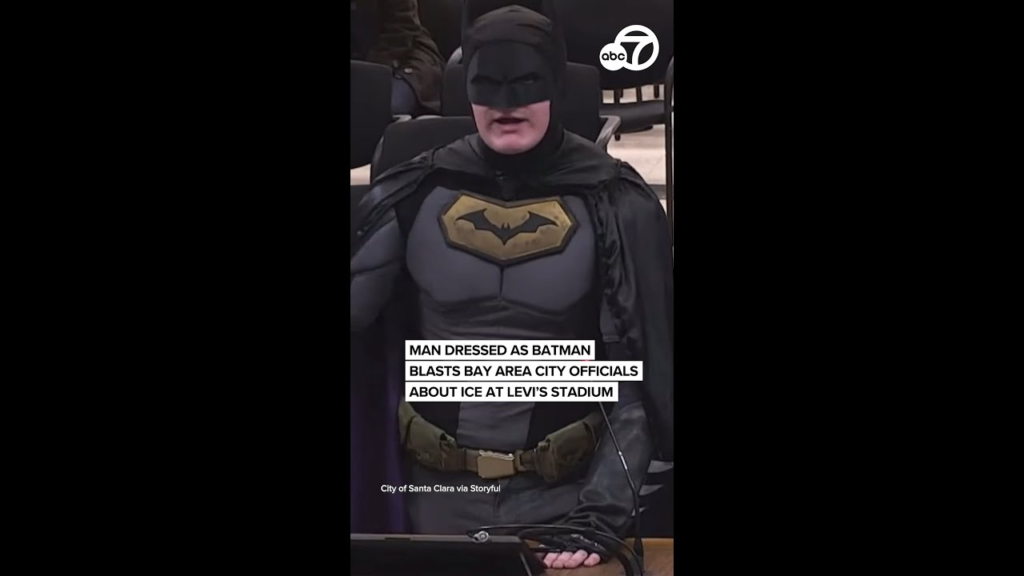 A public meeting of the Santa Clara City Council rarely attracts national attention, let alone global scrutiny. Yet a joint session of the council and the Santa Clara Stadium Authority in late January became an unexpected flashpoint in the ongoing debate over immigration enforcement, federal authority, and local government responsibility. The catalyst was not a policy paper or a protest march, but a single speaker who chose to address elected officials dressed as Batman.