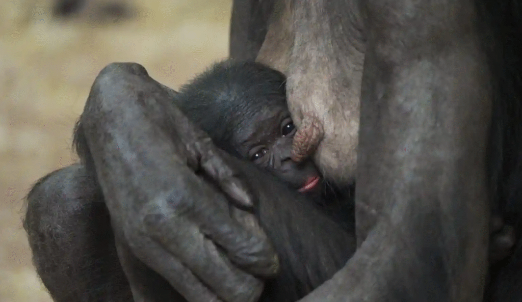 The delivery was smooth, with Yuli instinctively cradling her son from the moment he emerged, ensuring he nurses frequently and stays close to her chest for warmth and security. Keepers report that the pair is bonding beautifully, with Yuli displaying classic bonobo maternal behaviors: grooming her baby tenderly, vocalizing soft reassurances, and introducing him gradually to the troop. Visitors to the zoo can already glimpse this duo through viewing windows, where the infant’s tiny fingers clutch his mother’s fur—a sight that has drawn crowds eager to witness such fragility and strength intertwined.