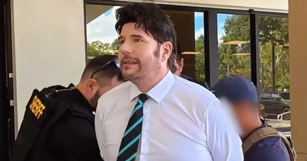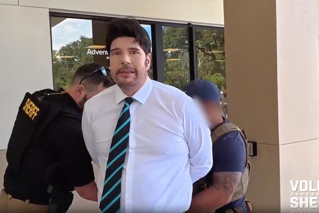Body-camera footage released by the Sheriff’s Office captured the moment of his arrest. As Kinney approached the entrance, deputies intercepted him, confiscated documents from his hands, and placed him in handcuffs. The footage shows a surprised Kinney asking, “What’d I do?” as officers surrounded him. He was taken into custody without resistance and charged with two felony counts of practicing healthcare without a license.