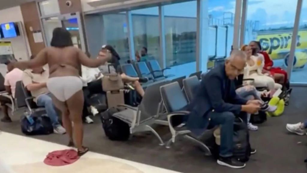 Spirit Airlines passenger has a meltdown, takes her clothes off during an argument at the airport.