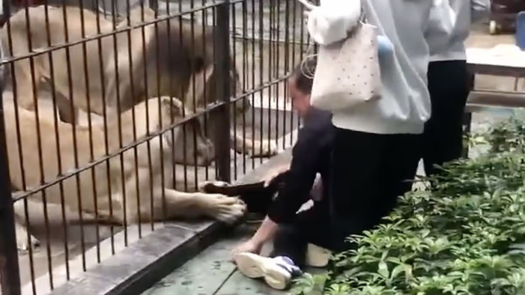 A zoo staff member quickly intervenes, first using a branch and later a metal rod to strike at the lionessās paw in an effort to force it to release its grip. The struggle lasts approximately half a minute before the lion finally lets go of the girlās clothing. Once freed, the child is swiftly moved away from the enclosure.