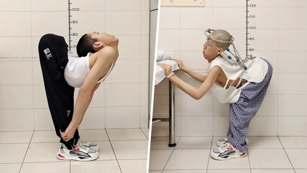 Jiang Yanchen, a 21-year-old from Dezhou, Shandong province, China, has captured the hearts of millions with his extraordinary journey of resilience and determination. Known as China’s “folded boy” due to a severe spinal deformity caused by ankylosing spondylitis, Jiang underwent four high-risk surgeries over two years to correct a 180-degree backward bend in his spine. His story is one of medical triumph, unyielding perseverance, and the power of human spirit in the face of overwhelming adversity. On August 25, 2025, Jiang took his first upright steps during a livestream, marking a historic milestone as the world’s first successful 180-degree spinal orthopedic correction.