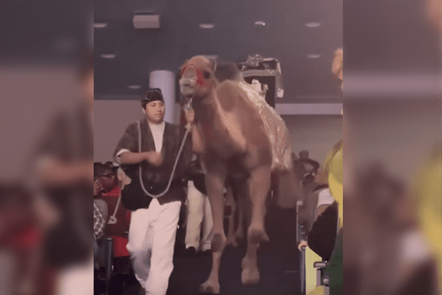 The incident took place during a Saturday showing of the “Christmas Spectacular,” a six-day production staged at Champion Forest Baptist Church in the Houston area. As part of the nativity reenactment, live animals, including camels, were incorporated into the presentation and led through the aisles of the church. Video footage later shared by Grizzy’s Hood News shows a camel being guided down an aisle by a handler when it suddenly lashed out with a powerful hind kick, striking a woman seated nearby in the face.