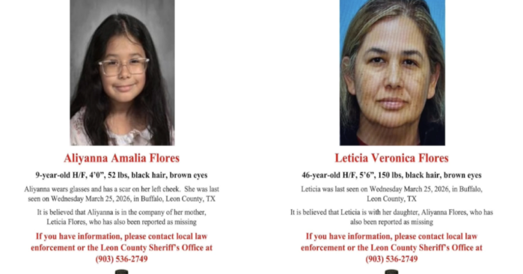 The disappearance of a mother and her young daughter in Leon County has prompted growing concern among authorities and the wider community as search efforts continue with limited information available. Officials are currently seeking assistance in locating 46-year-old Leticia Veronica Flores and her 9-year-old daughter, Aliyanna Amalia Flores, who were last seen on March 25 near Buffalo. As days pass without confirmed sightings, the urgency surrounding the case has intensified, with law enforcement agencies and advocacy networks working to spread awareness and encourage public cooperation.