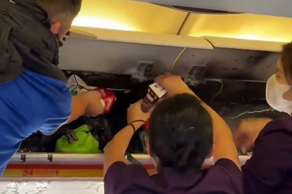 On Thursday, Hong Kong Airlines flight HX115 took off from Hangzhou, carrying 168 people, including crew members. Approximately an hour into the flight, panic spread through the cabin when a fire broke out in an overhead bin.