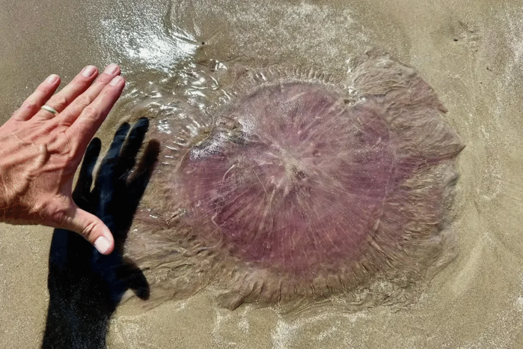 There, a pink meanie was observed draped around its favorite prey: a moon jellyfish, its long tentacles coiled like a predator claiming its catch. These jellyfish, which can weigh over 50 pounds, resemble oversized floating desserts bobbing in the waves, their translucent bells pulsing gently with the tide. For locals and visitors accustomed to more common Gulf marine life, this influx feels like a surreal invasion from a deep-sea fairy tale—one that’s as beautiful as it is bizarre.
