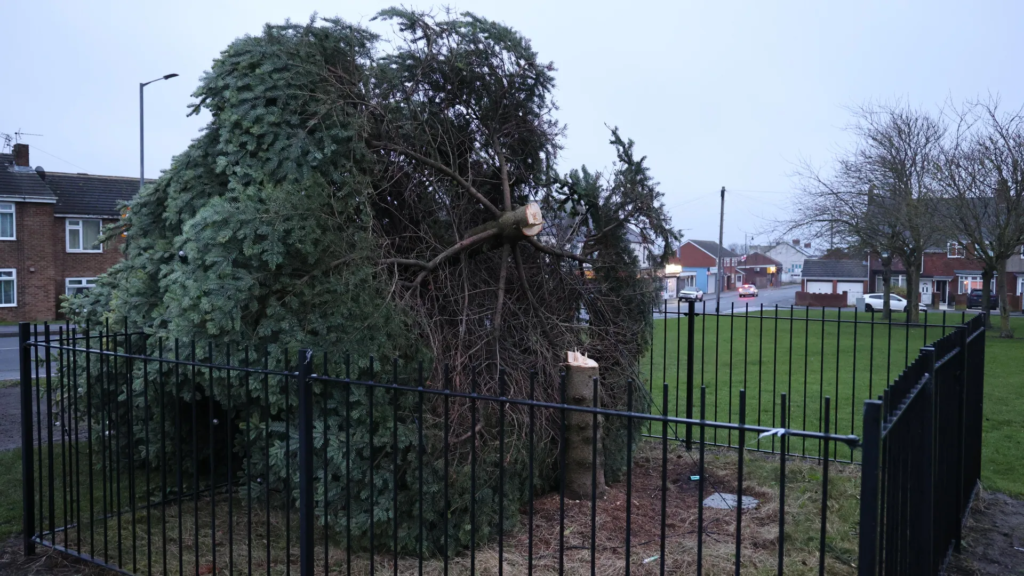The felling of a long-standing Christmas tree in Shotton Colliery, a village in County Durham, has sparked widespread anger, sadness, and reflection within the local community. The tree, planted more than a decade ago and closely tied to the village’s shared history and remembrance of fallen soldiers from the First World War, was cut down late on Wednesday night, just hours after residents had gathered to celebrate the annual switching-on of its Christmas lights.