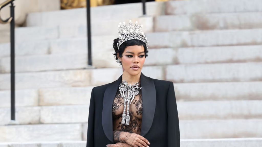 The moment felt carefully calibrated yet organic, a balance that has come to characterize Teyana Taylor’s public image. She appeared not as a passive wearer of couture, but as an active participant in its storytelling. The crown, the necklace, and the ensemble worked together to evoke heritage without nostalgia and spectacle without excess. In a fashion landscape often driven by shock or novelty, Taylor’s appearance stood out for its intellectual grounding and reverence for history, while still feeling undeniably modern. The viral response was swift, but it was rooted in substance as much as in visual impact.