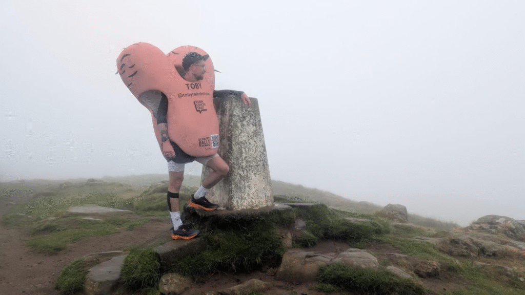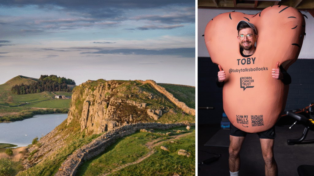 Toby Freeman, a charity boss from Colchester, has completed an extraordinary 90-mile run along the length of Hadrian’s Wall, dressed in a large pink testicles costume, to raise awareness and funds for testicular cancer. The grueling challenge, which took place over three days from Bowness-on-Solway in Cumbria to North Shields in North Tyneside, was part of The Robin Cancer Trust’s Big Ballsy Challenge.