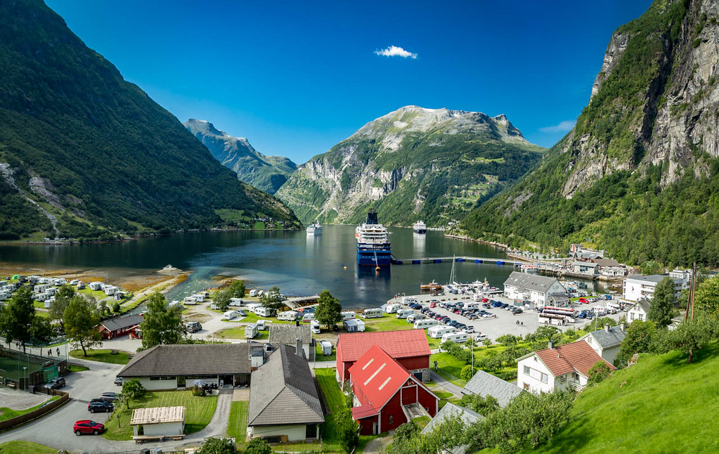Geiranger is a picturesque village nestled between towering mountains and the stunning Geirangerfjord, a UNESCO World Heritage site. The village is famous for its dramatic landscapes, which include cascading waterfalls such as the Seven Sisters and the Suitor. Surrounded by lush green valleys and steep cliffs, Geiranger offers visitors an unparalleled view of nature’s beauty.