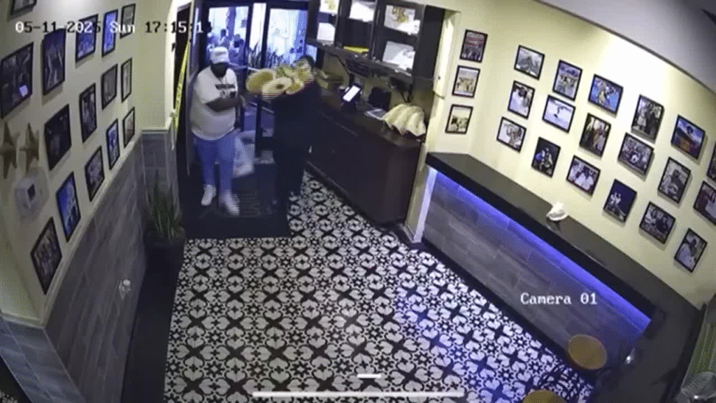 In a deeply disturbing scene that unfolded at Garcia’s Seafood Grill on Mother’s Day, a man’s angry outburst disrupted what should have been a joyful celebration for many families. Captured by CCTV footage and later shared on social media, the man’s violent behavior included deliberately knocking over a server’s tray full of food as he stormed out of the restaurant.