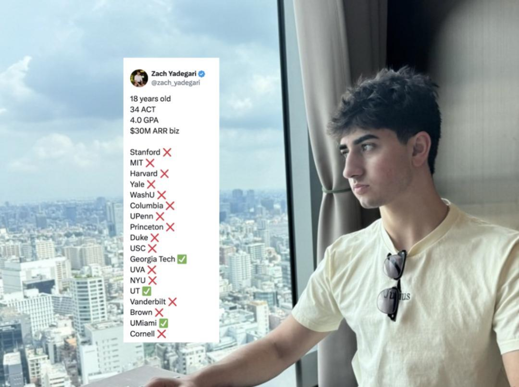 Zach Yadegari, an 18-year-old entrepreneur, has captured global attention after being rejected by several Ivy League and top American universities despite his remarkable academic and entrepreneurial achievements.